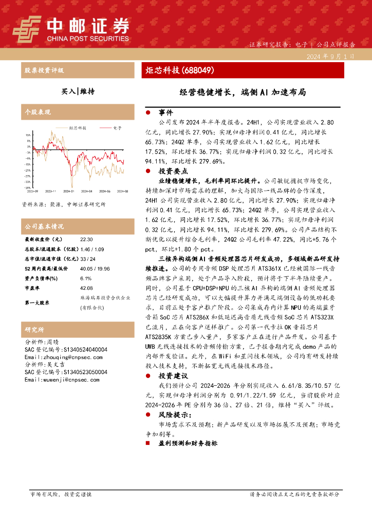 中邮证券:炬芯科技(688049)-经营稳健增长,端侧AI加速布局.pdf