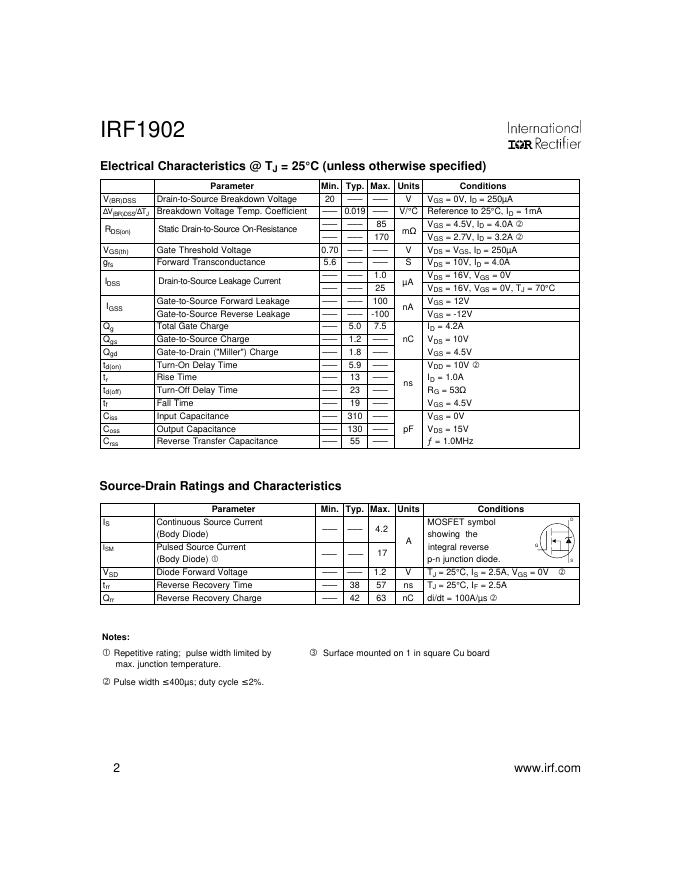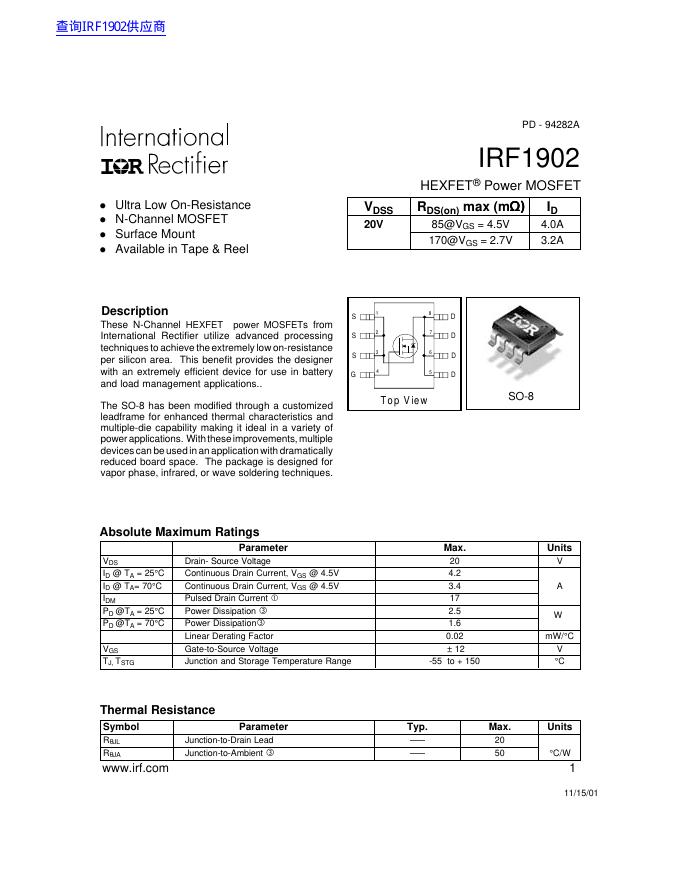 international IOR rectifier IRF1902 HEXFET Power MOSFET 数据手册.pdf