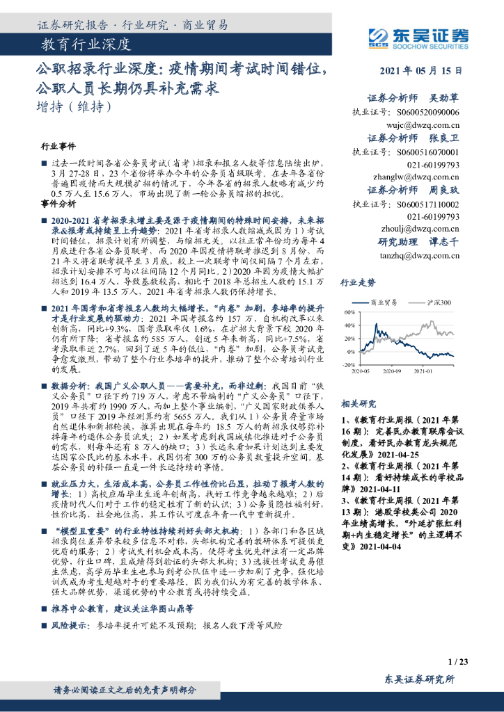 东吴证券:公职招录行业深度:疫情期间考试时间错位,公职人员长期仍具补充需求.pdf