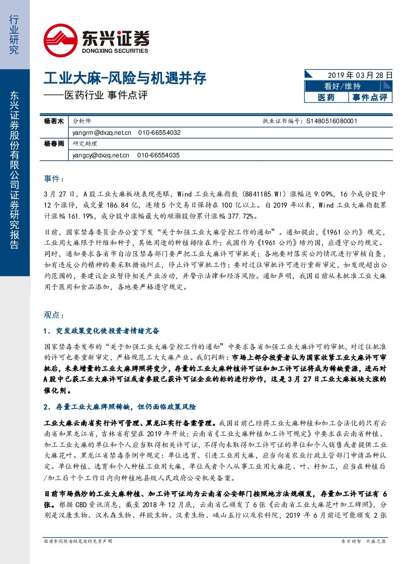 东兴证券:医药行业事件点评:工业大麻-风险与机遇并存.pdf
