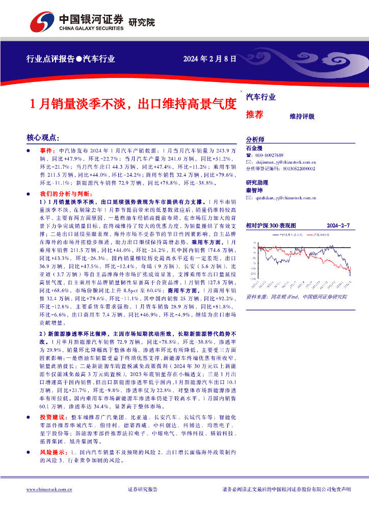 中国银河:汽车行业行业点评报告:1月销量淡季不淡,出口维持高景气度.pdf
