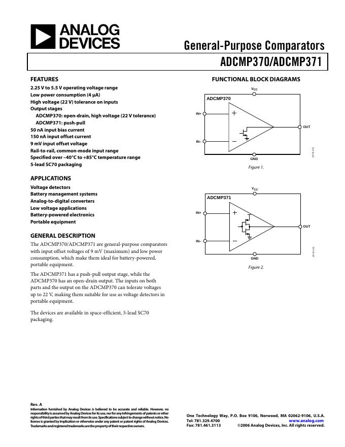 ANALOG DEVICES ADCMP370/ADCMP371 数据手册.pdf