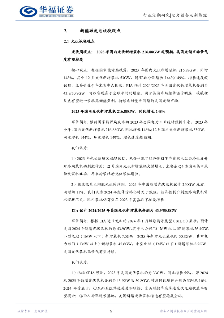 华福证券:电力设备及新能源行业周报-产业周跟踪: 风光全年装机双双超预期,特斯拉盈利能力下滑引发市场担忧.pdf