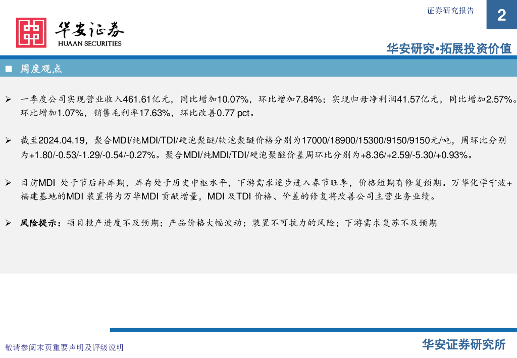华安证券:基础化工:万华化学基本面周度动态跟踪:万华一季度业绩环比改善,3月份国内聚合MDI出口11.3万吨.pdf