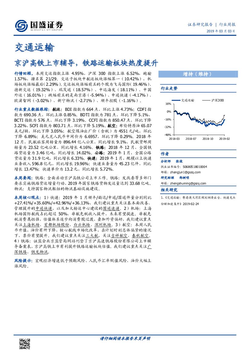 国盛证券:交通运输行业周报:京沪高铁上市辅导,铁路运输板块热度提升.pdf