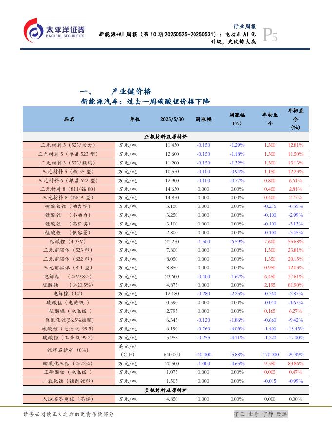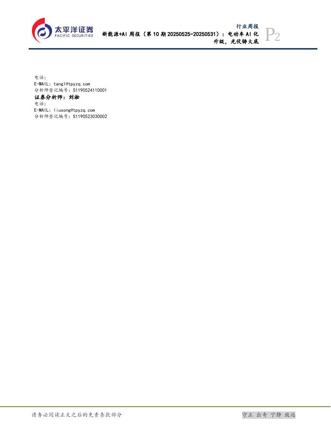 太平洋证券:电力设备及新能源行业新能源+AI周报(第10期20250525-20250531):电动车AI化升级,光伏铸大底.pdf