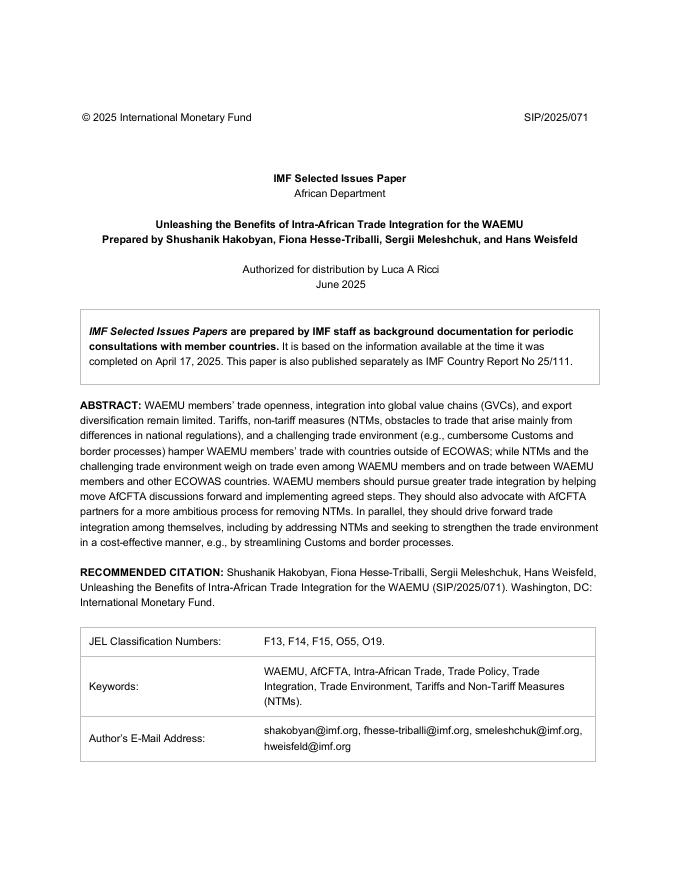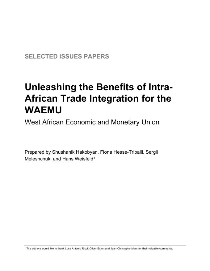 国际货币基金组织:为西非经货联释放非洲内部贸易一体化的好处:西非经货联盟(英文版).pdf