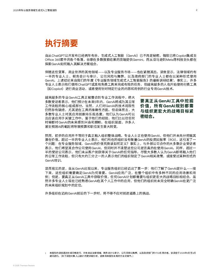 汤森路透:2025年专业服务领域生成式人工智能报告.pdf