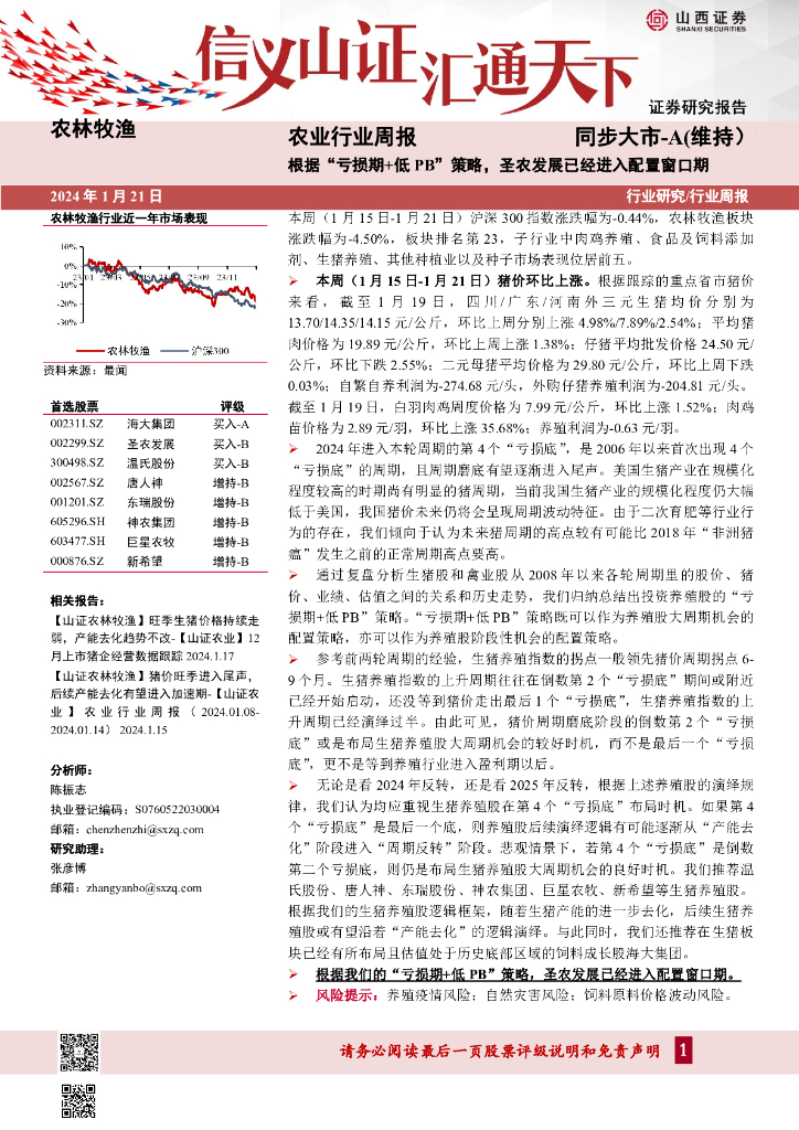 山西证券:农业行业周报:根据“亏损期+低PB”策略,圣农发展已经进入配置窗口期.pdf
