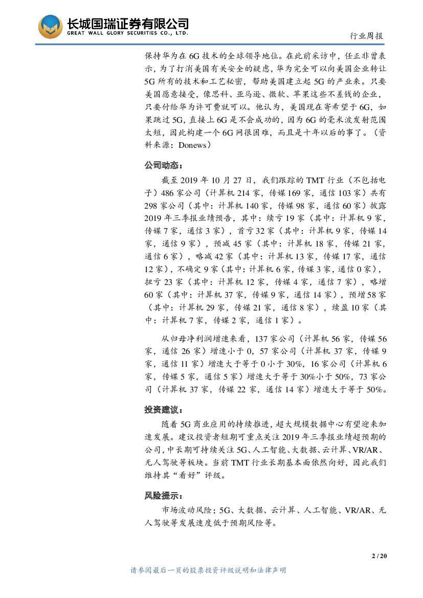 长城国瑞证券:TMT行业双周报2019年第21期(总第80期):全球超大规模数据中心数量增至504个,华为已在6G领域研发3年以上.pdf