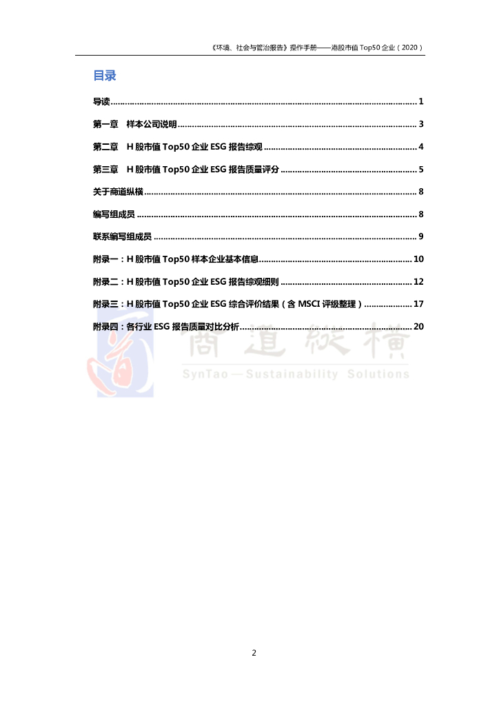 商道纵横:《环境、社会及公司治理报告》操作手册——港股市值Top50企业(2020版).pdf