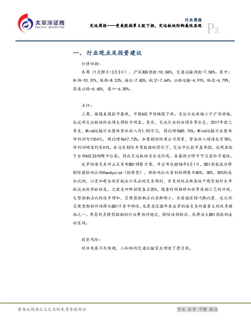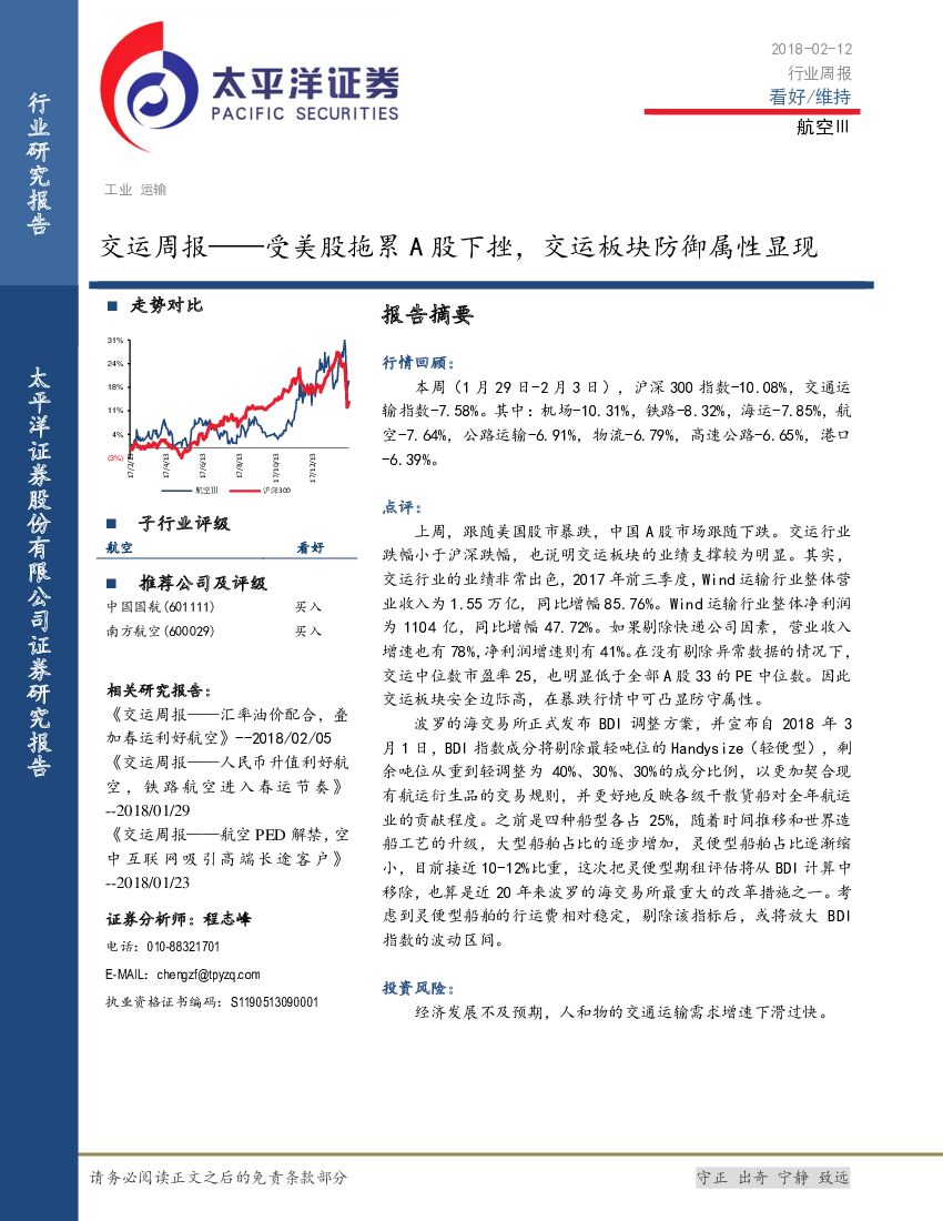 太平洋证券:交运周报:受美股拖累A股下挫,交运板块防御属性显现.pdf