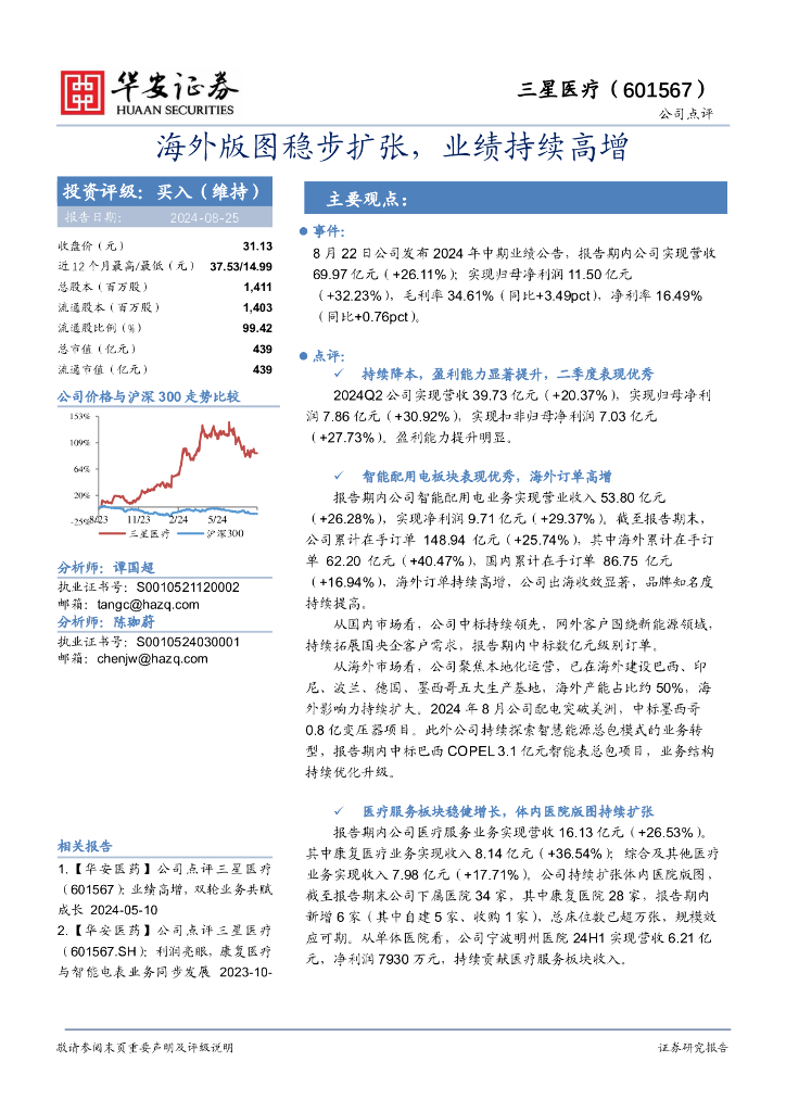 华安证券:三星医疗(601567)-海外版图稳步扩张,业绩持续高增.pdf