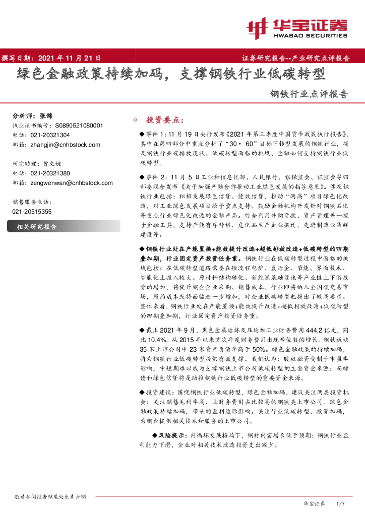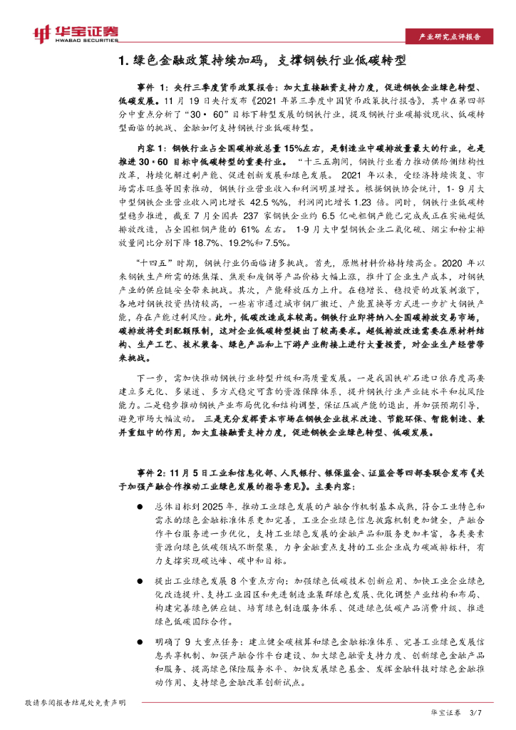 华宝证券:钢铁行业点评报告:绿色金融政策持续加码,支撑钢铁行业低碳转型.pdf