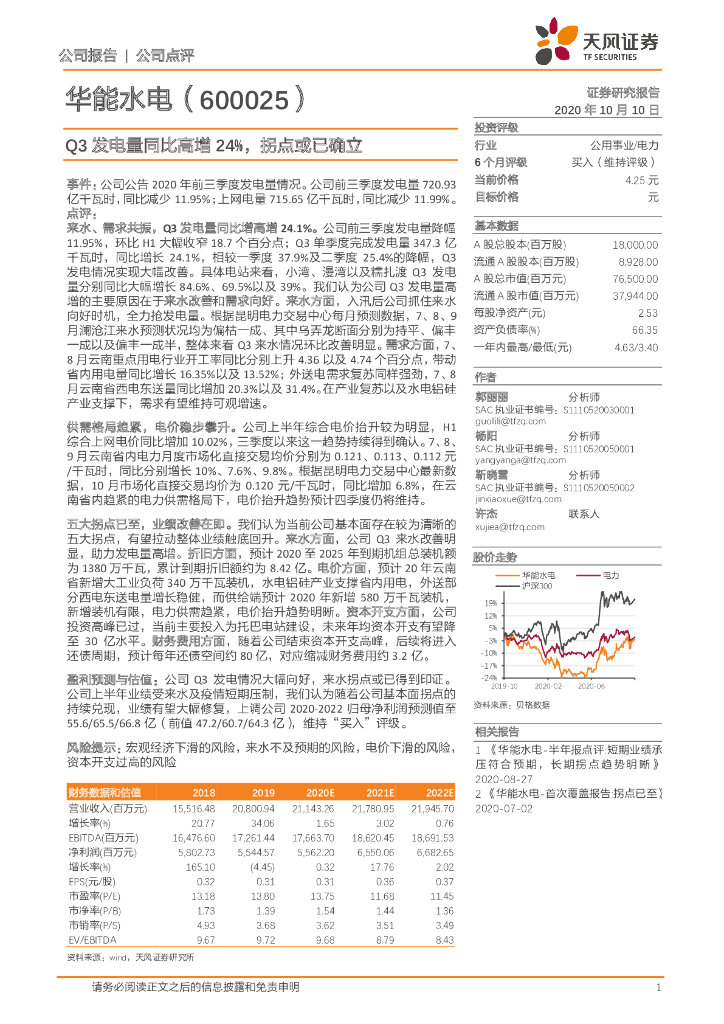 天风证券:华能水电(600025)-Q3发电量同比高增24%,拐点或已确立.pdf