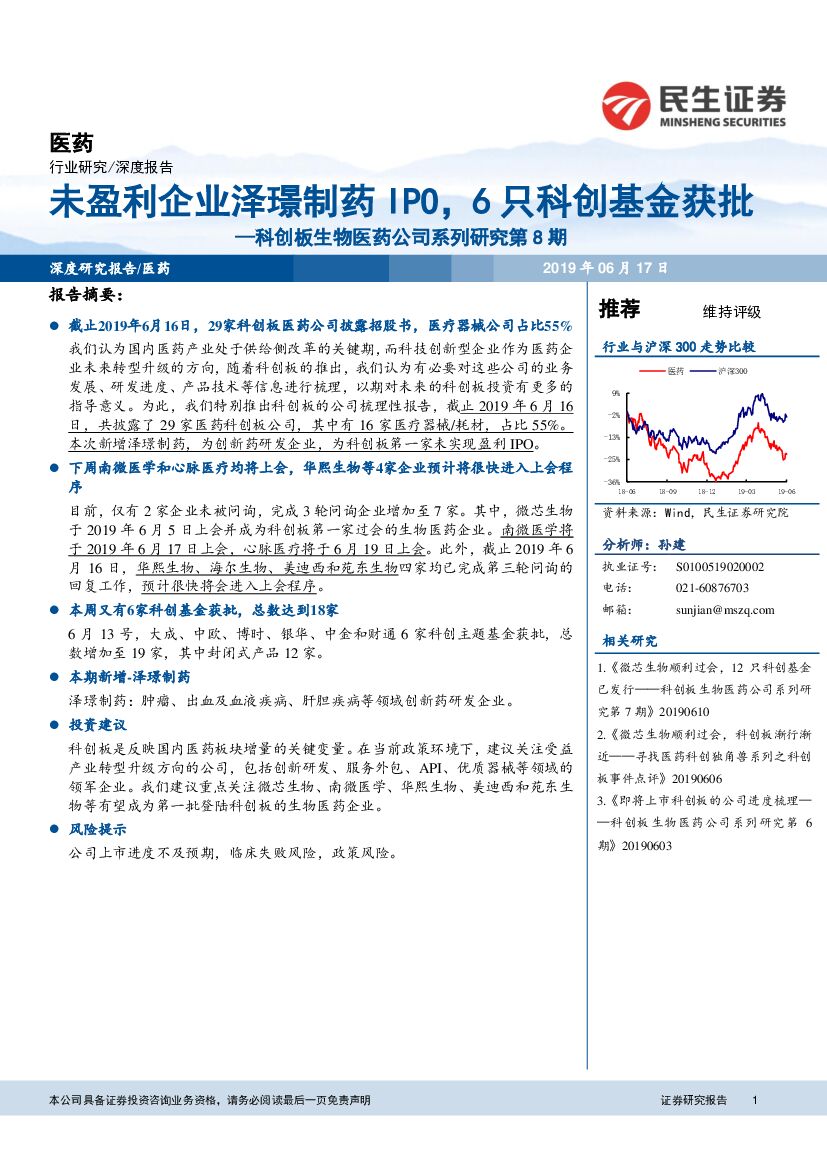 民生证券:科创板生物医药公司系列研究第8期:未盈利企业泽璟制药IPO,6只科创基金获批.pdf