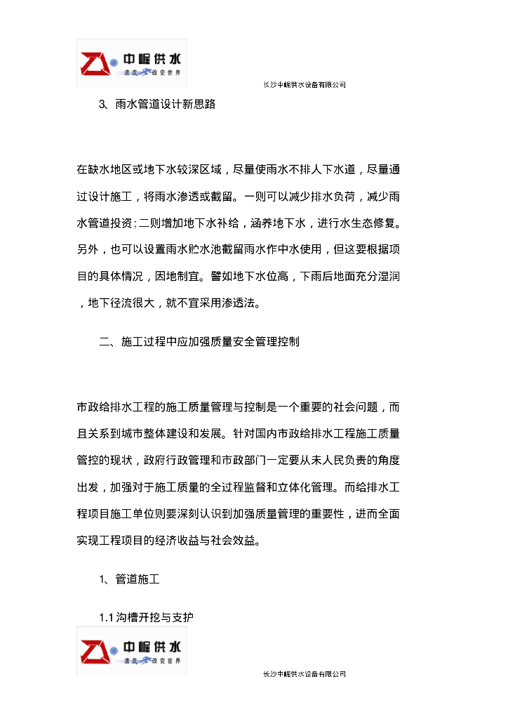 [湖南]长沙中崛供水公司市政给排水工程管理方案.pdf