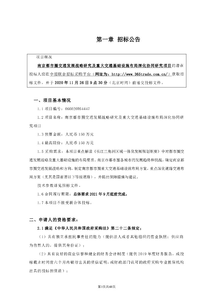 南京都市圈交通发展战略研究及重大交通基础设施布局深化协同研究项目招标文件.pdf
