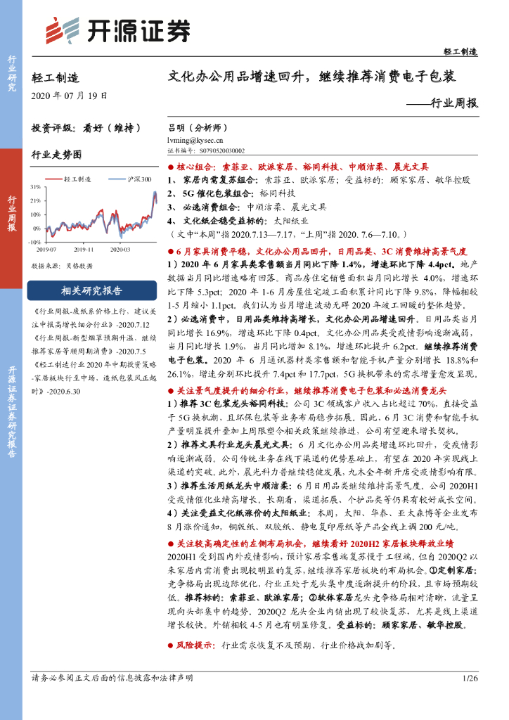 开源证券:轻工制造行业周报:文化办公用品增速回升,继续推荐消费电子包装.pdf