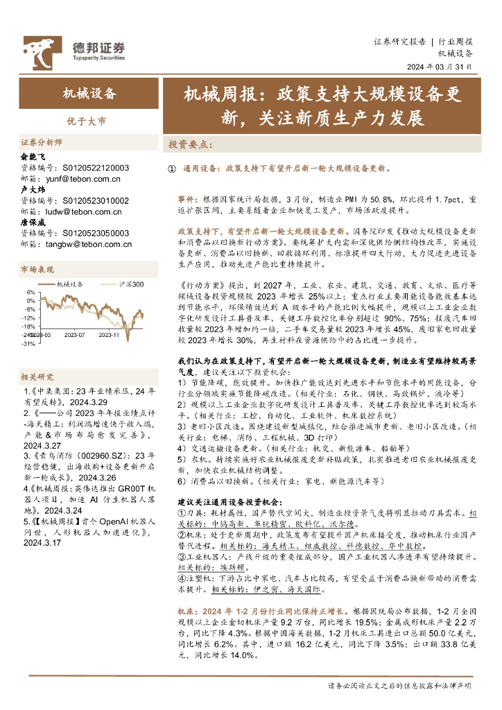 德邦证券:机械周报:政策支持大规模设备更新,关注新质生产力发展.pdf