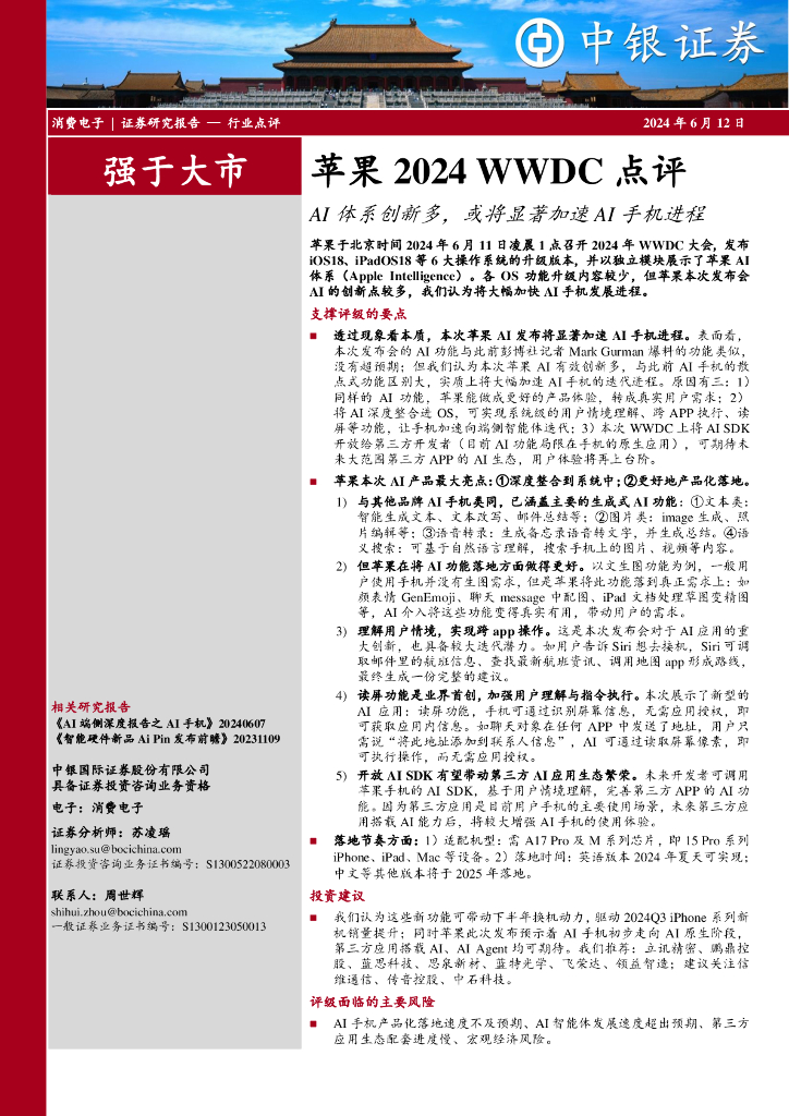 中银证券:消费电子:苹果2024WWDC点评-AI体系创新多,或将显著加速AI手机进程.pdf
