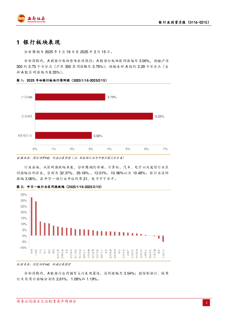 西南证券:银行业投资月报:信贷“开门红”势头强劲,银行业整体稳中向好.pdf