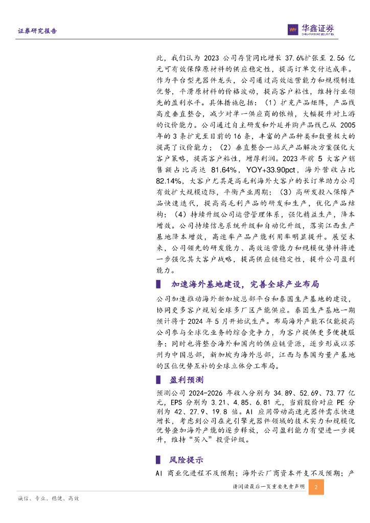 华鑫证券:天孚通信(300394)-公司事件点评报告:国产光引擎龙头业绩高速增长,全球布局加速推进.pdf