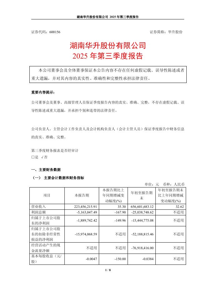 600156-华升股份:华升股份2025年第三季度报告.pdf