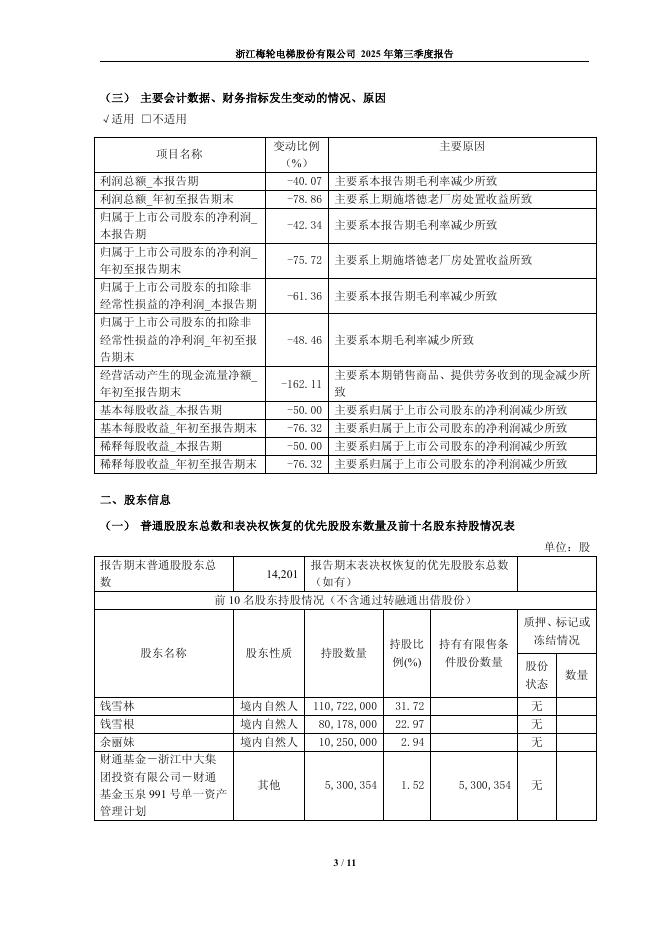 603321-梅轮电梯:浙江梅轮电梯股份有限公司2025年第三季度报告.pdf