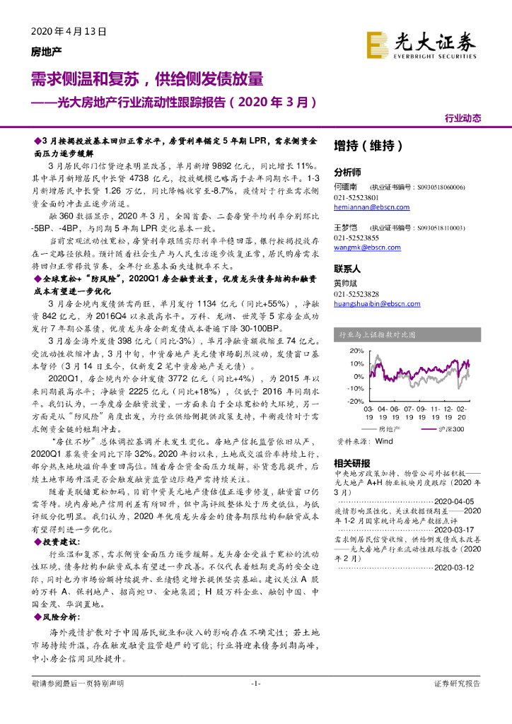 光大证券:光大房地产行业流动性跟踪报告(2020年3月):需求侧温和复苏,供给侧发债放量.pdf