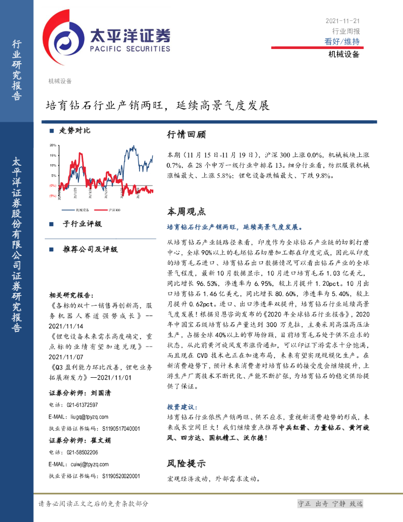 太平洋证券:机械设备行业周报:培育钻石行业产销两旺,延续高景气度发展.pdf