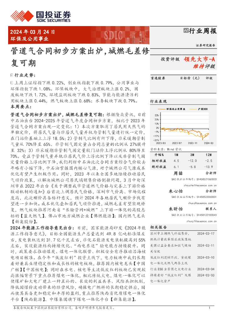 国投证券:环保及公用事业行业周报:管道气合同初步方案出炉,城燃毛差修复可期.pdf