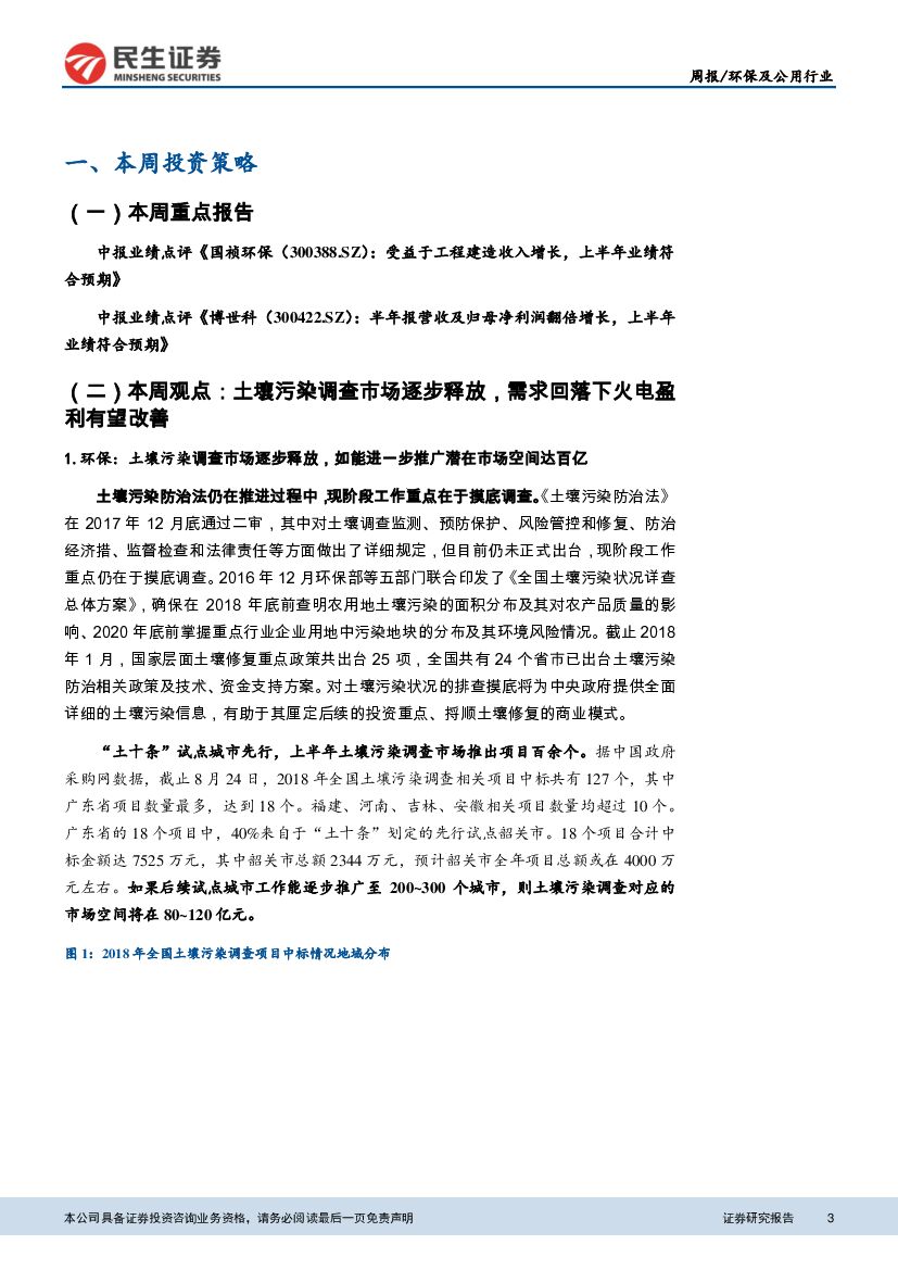 民生证券:环保及公用事业行业研究周报:土壤污染调查市场逐步释放,需求回落下火电盈利有望改善.pdf