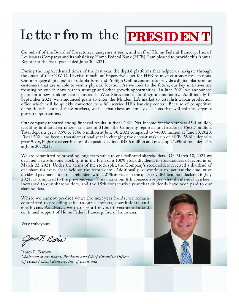 Home Federal Bancorp, Inc. of Louisiana(HFBL)2021财年年度报告(英文版).pdf