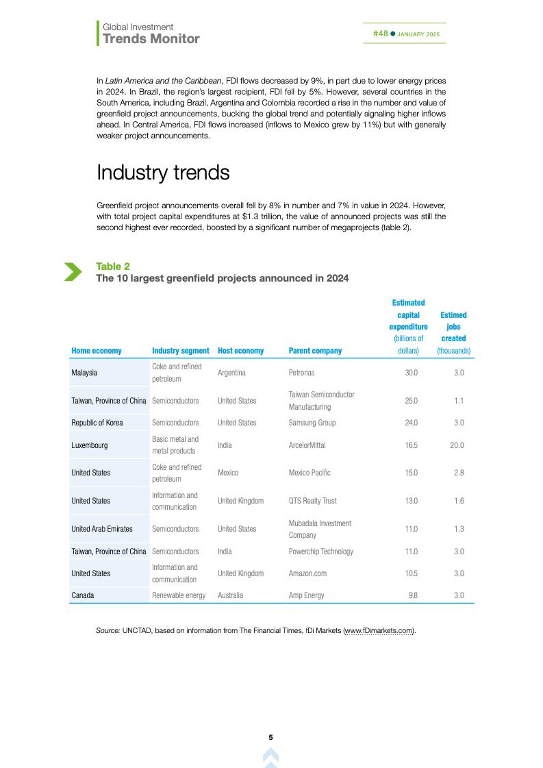 联合国贸发组织:2025年1月全球投资趋势监测报告(英文版).pdf
