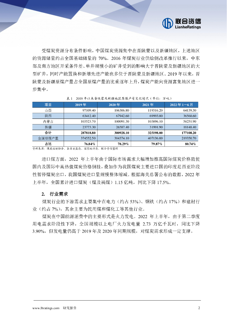 联合资信:2022年上半年煤炭行业信用风险总结与展望.pdf