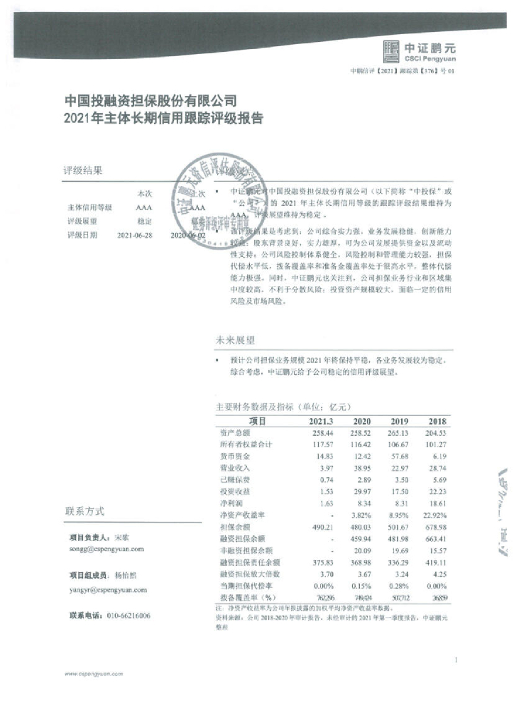 鹏元:中国投融资担保股份有限公司2021年主体长期信用跟踪评级报告.pdf