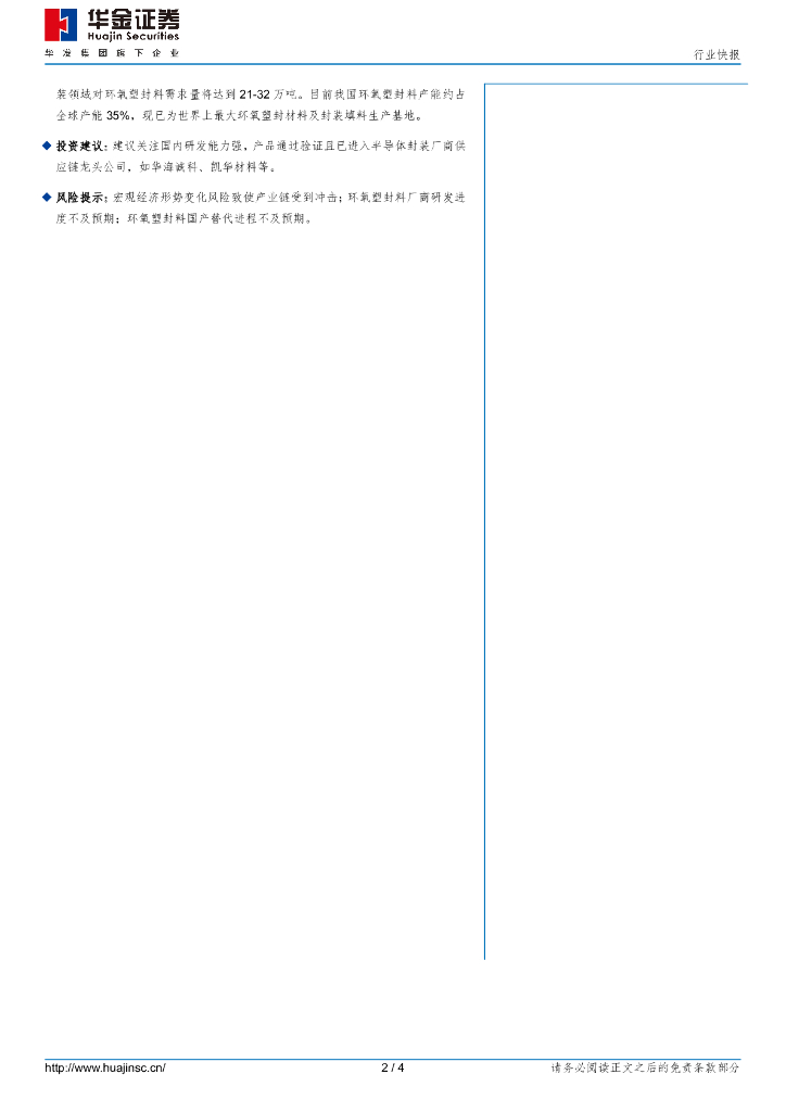 华金证券:半导体材料行业快报:国内环氧塑封料需求有望超20万吨,中高端领域内少数内资厂商通过客户验证.pdf