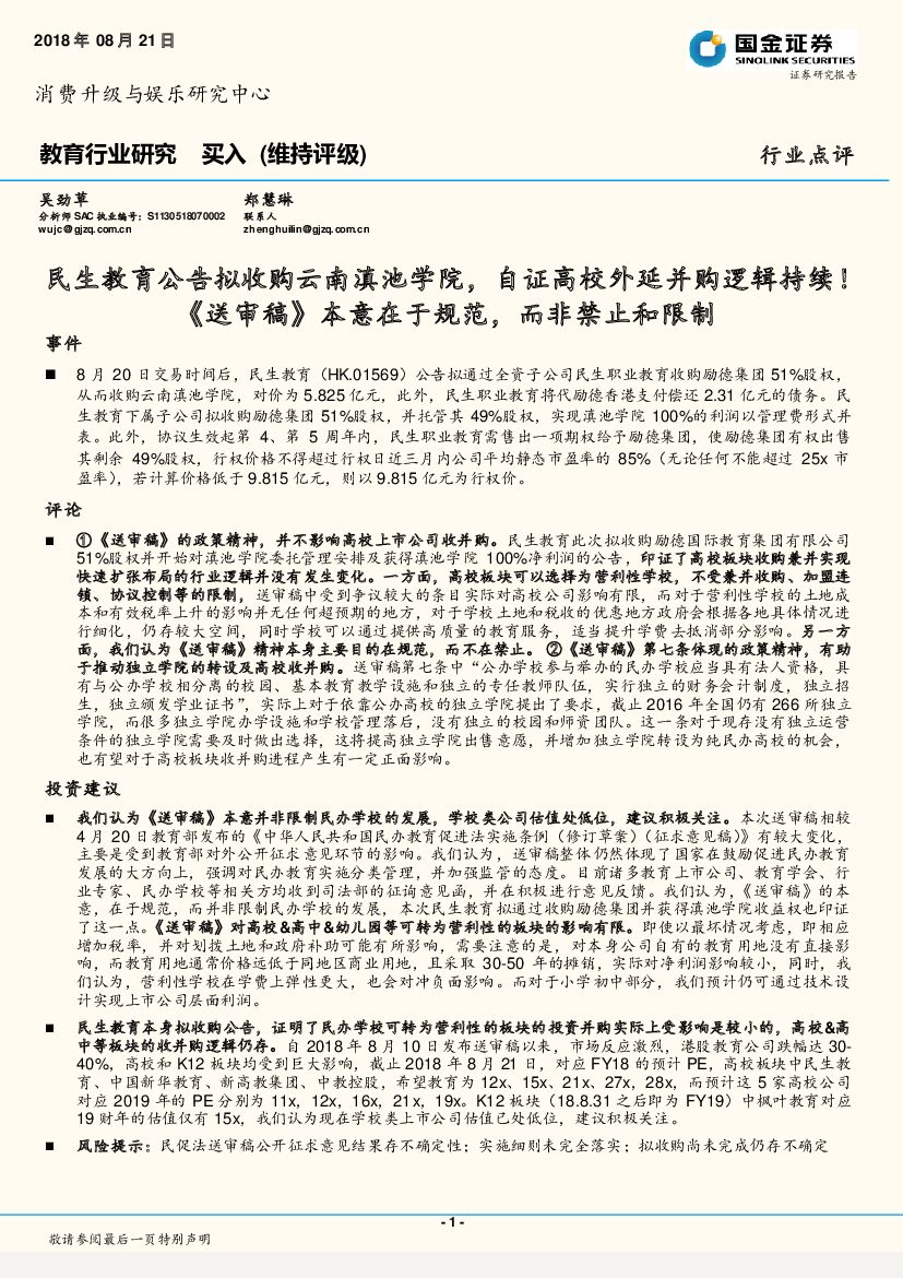 国金证券:教育行业研究:民生教育公告拟收购云南滇池学院,自证高校外延并购逻辑持续!《送审稿》本意在于规范,而非禁止和限制.pdf