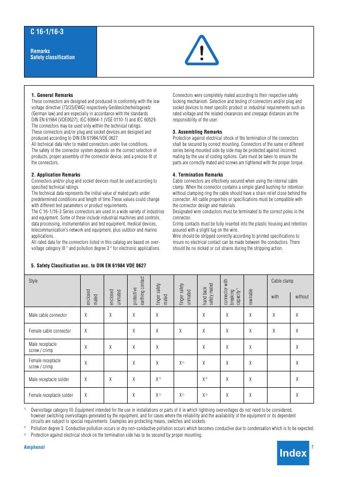 AMPHENOL C 16-1/16-3 Remarks Safety classification 数据手册.pdf