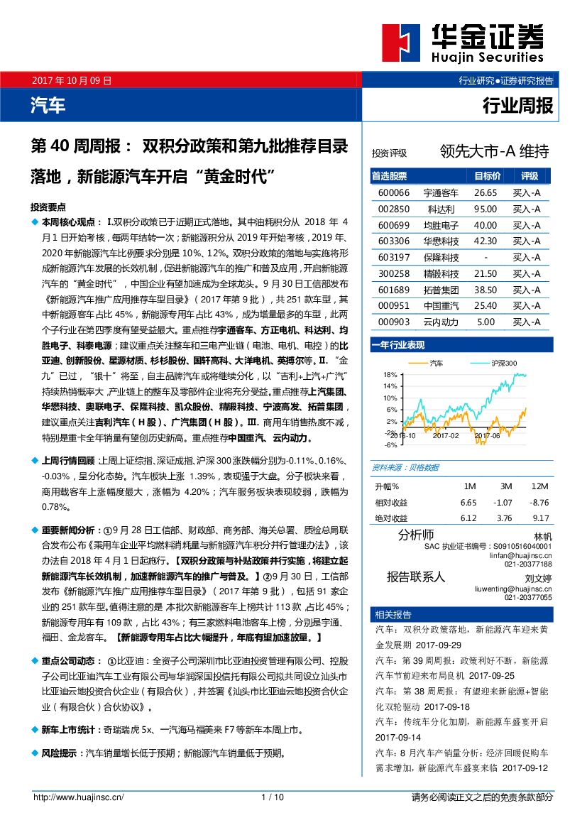 华金证券:汽车第40周周报:双积分政策和第九批推荐目录落地,新能源汽车开启“黄金时代”.pdf