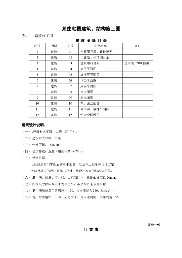五层住宅楼建筑施工图、结构施工图.doc