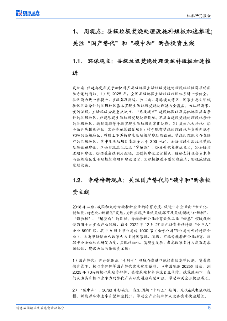 国海证券:环保&专精特新周报:县级垃圾焚烧处理设施补短板加速推进.pdf