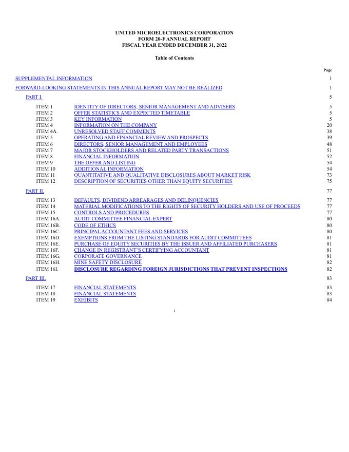 联华电子United Micro Electronics Corp.(UMC)2022年20-F年度报告(英文版).pdf