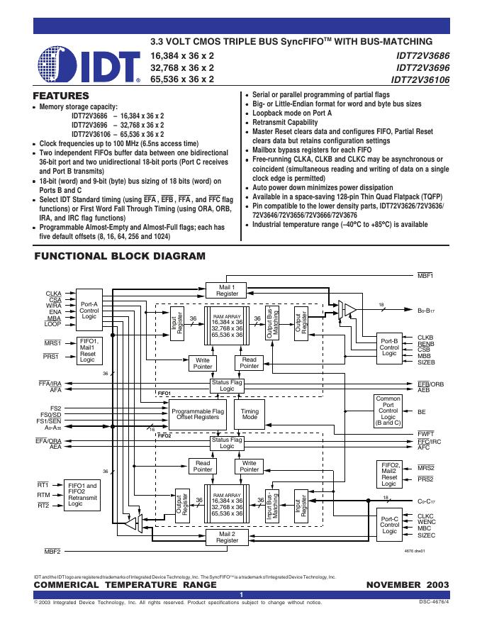IDT IDT72V3686 IDT72V3696 IDT72V36106 数据手册.pdf