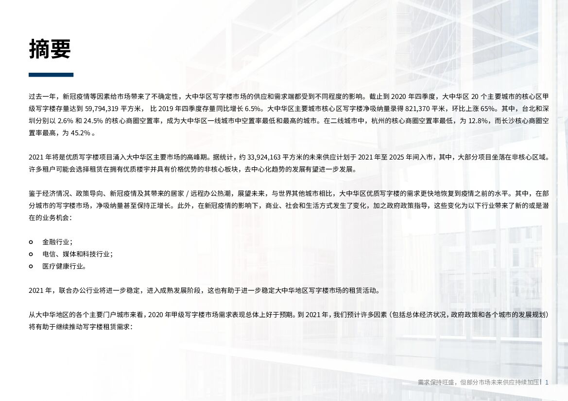 戴德梁行:大中华区写字楼供应/需求核心趋势.pdf