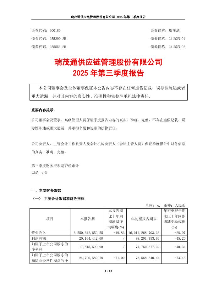 600180-瑞茂通:瑞茂通2025年第三季度报告.pdf
