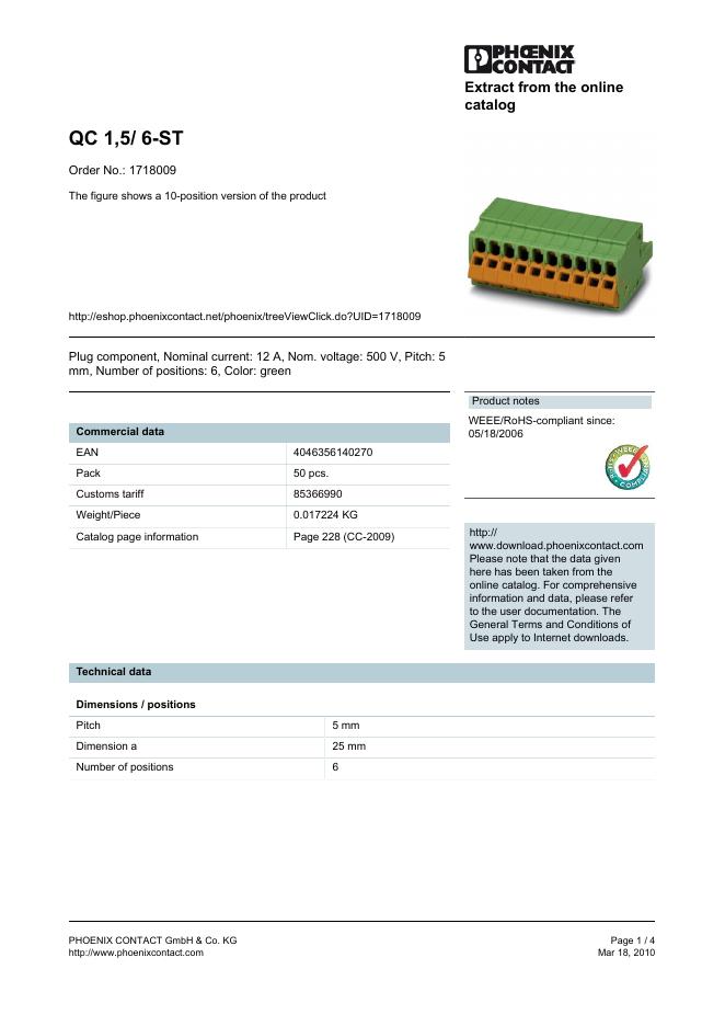 PHOENIX CONTACT QC 1,5/ 6-ST Order No.: 1718009 The figure shows a 10-position version of the product 数据手册.pdf