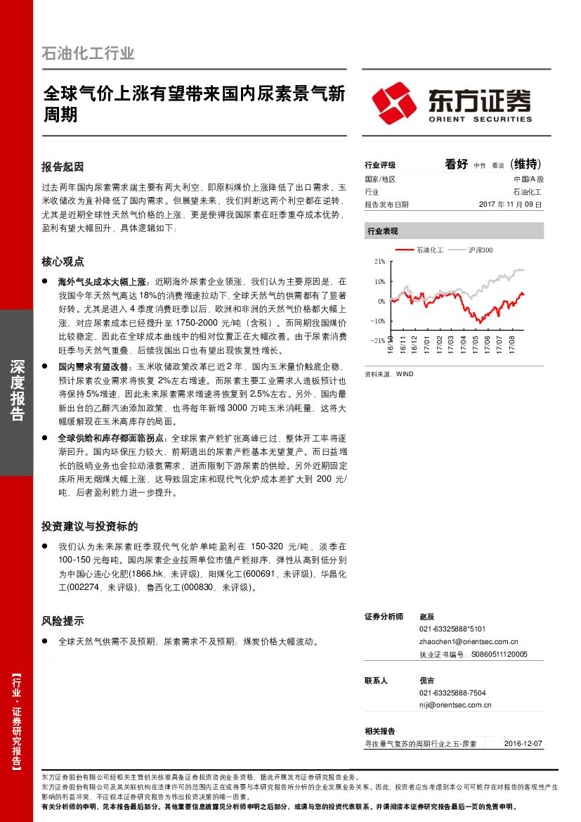 东方证券:石油化工行业:全球气价上涨有望带来国内尿素景气新周期.pdf