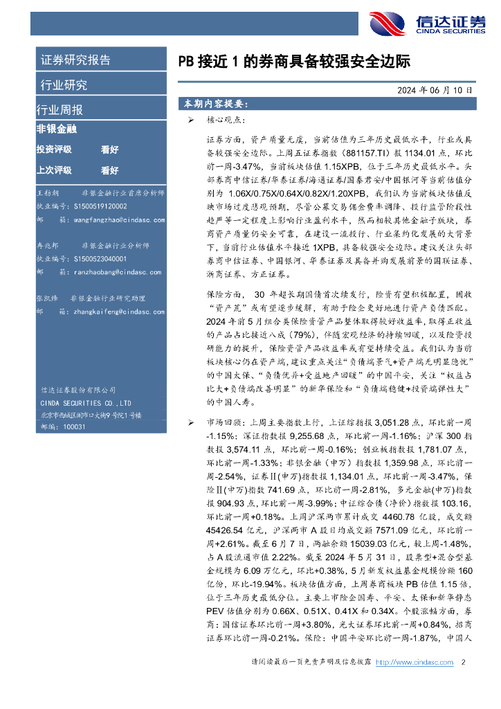 信达证券:非银金融行业周报:PB接近1的券商具备较强安全边际.pdf